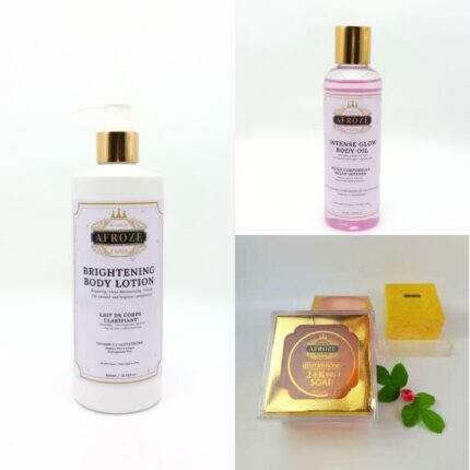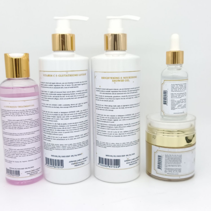 La GAMME BRIGHTEN GOLD + est un ensemble naturel enrichie de glutathion, vitamine C, arbutine et Collagène pour une action clarifiante et une hydratation longue durée du corps et visage.
